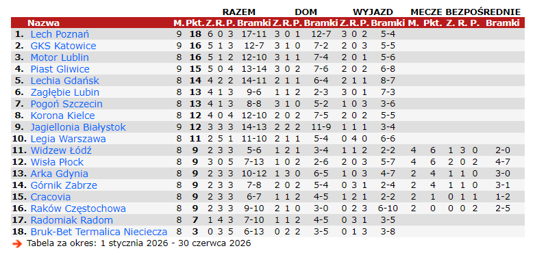 Punkty i przewaga Radomiaka po 26 meczach